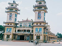 A Tay Ninh, visite du Grand Temple Saint-Siège de la religion Cao dai – un endroit de pèlerinage des pratiquants caodaïstes. Le caodaïsme est un secte comportant des religions différentes : le bouddhisme, le christianisme, le confucianisme, le taoïsme, le hindouisme, et l’islam.