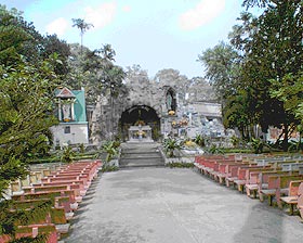 Je réféchis rapidement et dis connaître une autre église à Cholon qui pourraît correspondre à cette description. Nous arrivons à église mais la surprise débordante chez madame ne vient pas. Nous sortons du véhicule et plus nous avançons, plus je lis un mélange de gêne et de perplexité. Nous tournons autour de l'église et nous découvrons derrière un petit lieu naturel de culte à la Vierge Marie.